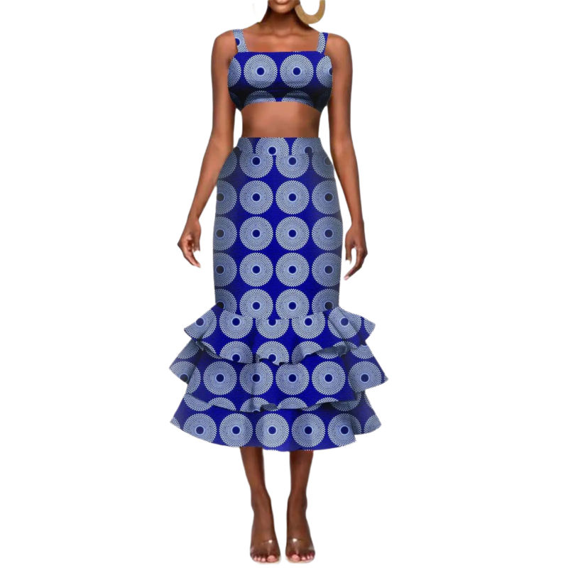 SA4066 African Clothes for Women – Crop Top & Midi Skirt 2 Piece Set | Dashiki Ankara Outfit
