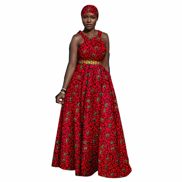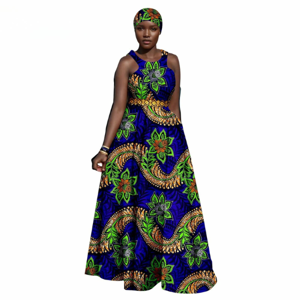 SA 4047African Women Ankara Sleeveless Gown with Headscarf