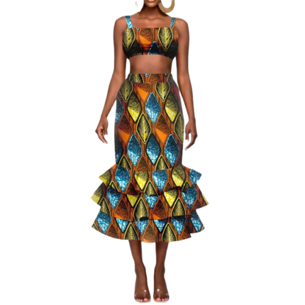 SA4064 African 2 Piece Set for Women – Dashiki Print Skirt & Top | Ankara Wax Outfit | AFRIPRIDE